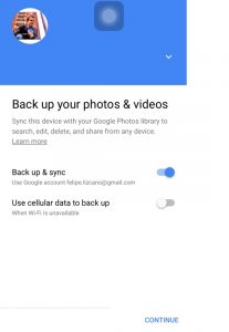 Configuración del Back-Up de las fotos